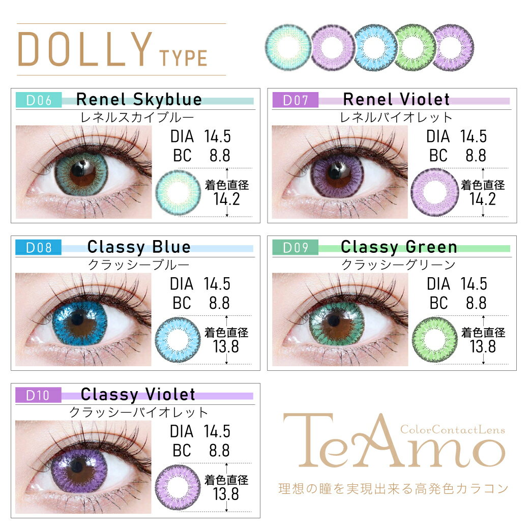 販売名 ティアモ 原材料 ポリマコン、着色剤 含水率 38% カラー Renel Blue レネルブルー Renel Pink レネルピンク Renel Yellow レネルイエロー Renel Red レネルレッド Renel Skyblue レネルスカイブルー Renel Violet バイオレット Classy Blue クラッシーブルー Classy Green クラッシーグリーン 直径(DIA) 14.5mm ベースカーブ(BC) 8.8mm 装用期間 1ヵ月(使用状況により異なります) 度数 0.00D / -0.50D〜-5.50D(0.25Dステップ) / -6.00D〜-10.00D(0.50Dステップ)(但し、-5.25を除く) 広告文責 株式会社TeAmo 0120-545-966 ブランド名 TeAmo 製造国 韓国 製造者名 株式会社EOS 取扱商品区分 高度管理医療機器 医療機器承認番号 22300BZX00181000 高度管理医療機器等販売業許可証 28新保衛薬第489号 注意喚起 ※「眼科医院等にて検査を受けてからお求めください」 ※「処方箋の提出に関して※通販サイトなので処方箋は必要ありません。