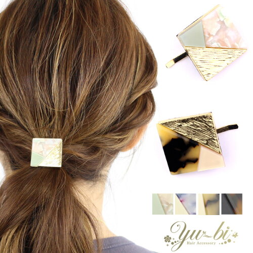 【メール便送料120円】ポニーフック/べっこう マーブル スクウェア バイカラー pn64☆ミント/紫/ベージュ/茶色 四角 アセテート ゴールド ヘアフック ヘアカフ ヘアカフス ヘアアクセサリー 髪飾り くるりんぱ ヘアゴム ヘアピン ヘアアレンジ【あす楽対応】